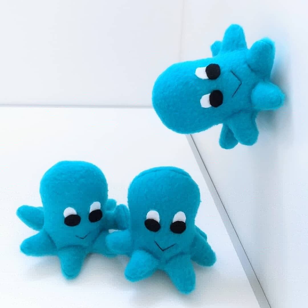 (ぬいぐるみタイプのタコモダチは、目を糸で縫い付けていますので安心です)